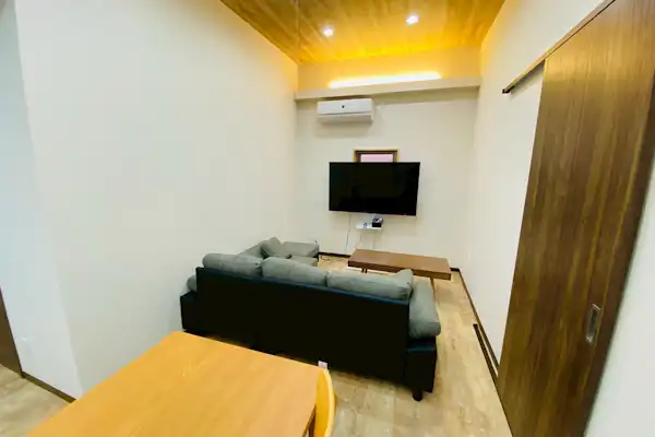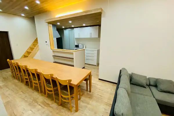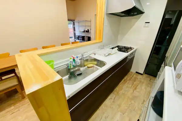 미야지마까지 차로 10분, 관광에 편리한 위치. 옵션 선택으로 반려견과 함께 숙박 가능. 최대 9명까지 숙박 가능. 풀 리노베이션된 청결하고 쾌적한 공간에 높은 천장과 넓은 다락방, 다락방에도 에어컨이 설치되어 있어 편안하게 취침할 수 있습니다. 주방에서 각 객실로의 동선은 컴팩트하면서도 적당한 거리감을 유지하여 쾌적하게 지낼 수 있도록 설계되었습니다. 시스템 키친과 냉장고를 완비하고 있으며, 식기와 조리 도구, 가전제품도 갖추어져 있어 식재료만 준비하시면 간편하게 숙박 가능합니다. 지붕이 있는 우드 데크에서는 날씨 걱정 없이 BBQ(숯불 불가)를 즐길 수 있으며, 정원에서는 불꽃놀이를 즐기실 수 있습니다. 소중한 가족이나 친구들과 시간을 잊고 즐길 수 있는 매력 넘치는 대여 별장에서 특별한 시간을 보내세요.