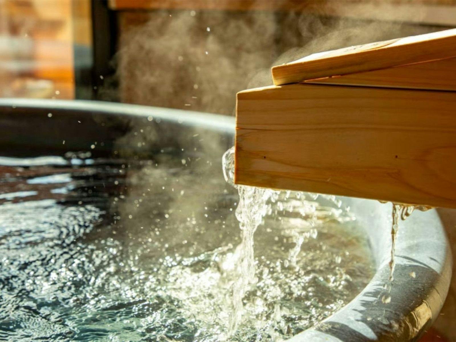 | 온천수의 성질 및 효능 | 염화물천, 산성천, 황산염천 【온천 수질별 적응증】 베인 상처, 냉증, 말초순환장애, 우울 상태, 피부 건조증 【일반적 적응증】 관절 류마티스, 냉증, 요통, 신경통, 타박상·염좌 등의 만성기, 자율신경 불안정증, 스트레스로 인한 여러 증상(수면장애, 우울 상태 등), 병후 회복기, 피로 회복 등 ※원천 가케나가시 표기에 대하여 |