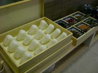 | 아침 식사 | 조식은 간단한 뷔페 형식으로 제공됩니다. 장소는 2번관 1층 라운지에서 오전 7시부터 9시 30분까지 준비되어 있습니다. 현지 오미쌀로 만든 주먹밥을 제공합니다. 간단한 내용이지만, 리필이 자유로우니 원하시는 만큼 드실 수 있습니다. |