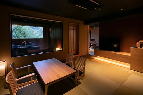 8 ruang tamu yang menggambarkan ruang santai yang indah dengan gabungan "harmoni" dan "ketenangan". Nikmati suasana nostalgia di bilik gaya Jepun dan ketenangan di bilik tidur sambil merasai aliran masa. Semua 8 bilik dilengkapi dengan tab mandi terbuka yang menyatu dengan alam semula jadi, merasai kehijauan dan angin, serta bersantai dalam masa yang perlahan.