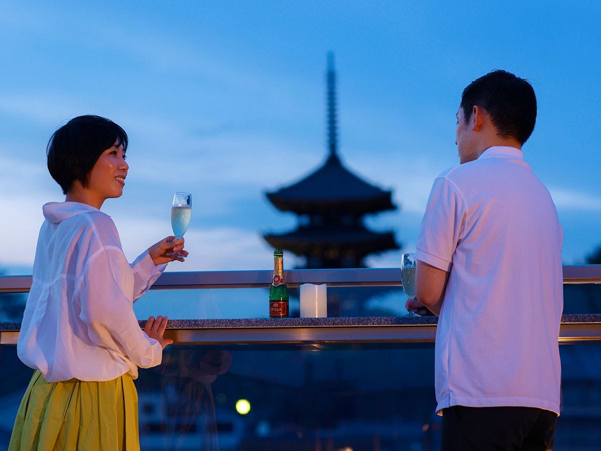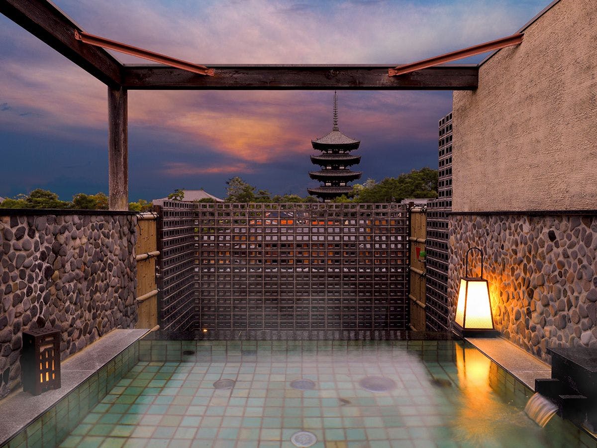 Nikmati suasana kota kuno yang memikat, termasuk pemandian terbuka di atas bumbung dengan pemandangan langsung ke Pagoda Lima Tingkat Kofukuji. Rendam diri anda dalam "Air Panas Buatan Kalsium Karbonat" untuk saat-saat relaksasi yang menyegarkan.
