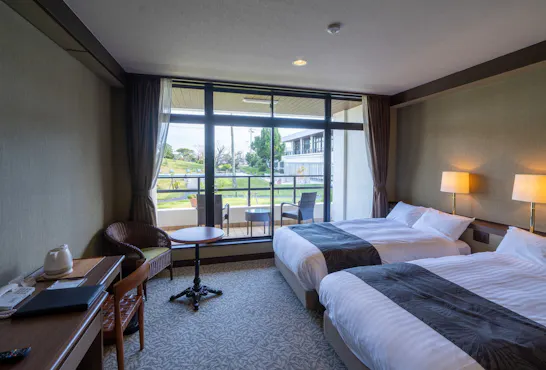 Suite Lanai Pemandangan Laut di tingkat 1 membolehkan anda menikmati Mata air panas dari sumber tradisional "Gyoko" di tab mandi luar bilik tamu. Dari tab mandi luar peribadi di lanai (14.4 m²), anda boleh melihat Lautan Pasifik. Selain itu, semua bilik menghadap laut dilengkapi dengan bilik pancuran mandian dan bukannya tab mandi.