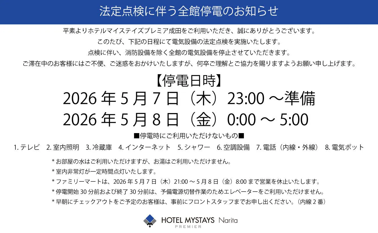 Terima kasih kerana sentiasa memilih Hotel MYSTAYS Premier Narita.