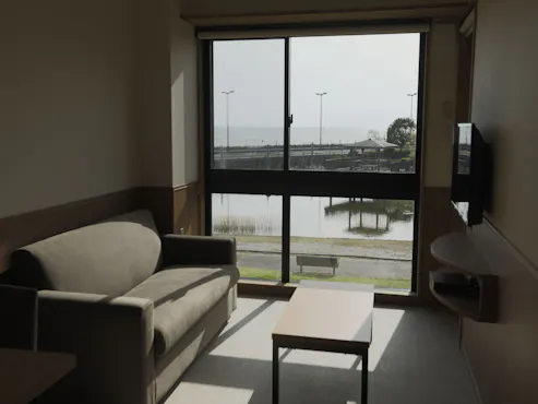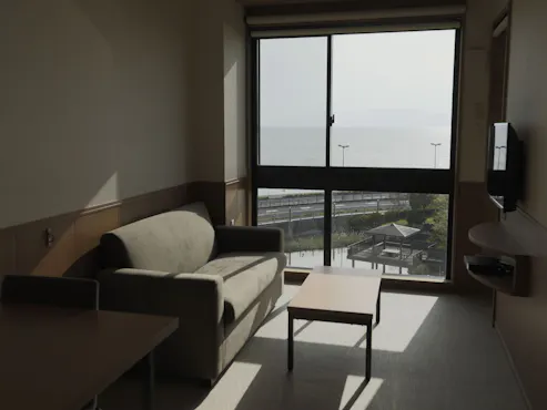 We stayed as a family of four with my parents and our 2-year-old toy poodle. The room was convenient and allowed us to enjoy a relaxing stay. The staff were friendly and made our experience pleasant. Additionally, there was a walking path right next to the hotel, which was very convenient! It was an accommodation we would love to visit again.