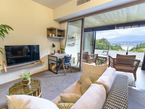 ふわせぱぱ 16/3/2026We splurged to find an Accommodation with a view of Mt. Fuji!We were lucky with the weather, but I never expected we’d be able to see it so perfectly straight on from our Room as well, so I was truly happy. It would have been even better if there had been a sofa or chair positioned to sit facing the window.The Room was flawless, and the food was delicious.The outdoor lounge with a bonfire had a wonderful atmosphere and was amazing.I also appreciated that beer and coffee milk were included in the free drinks.The amenities were just right—plenty of towels, bathrobes, loungewear, pajamas, and more.The only personal downside was that the water temperature in the private open-air bath attached to the guest room was quite hot, so I had to add cold water every time, which felt like a waste of time. It was too hot for a quick soak when I felt like it (lol).If a friend said they wanted to stay at an Accommodation with a view of Mt. Fuji, I would recommend this place without hesitation.Thank you very much.