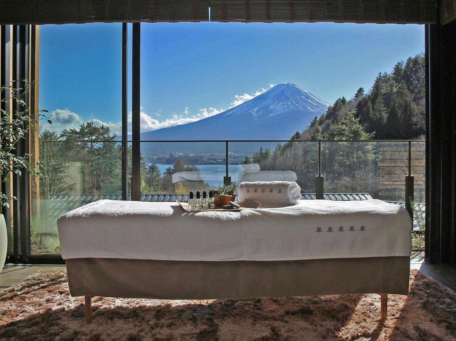 Terletak selepas anda merentasi alam semula jadi yang megah di Tasik Kawaguchi, “Fufu Kawaguchiko” ialah resort mewah berskala kecil dengan pemandangan indah Gunung Fuji dari setiap Bilik. Di Bilik yang membiarkan anda merasai hembusan angin Tasik Kawaguchi, setiap Bilik dilengkapi Mata air panas semula jadi terbuka dengan lantai batu lava Gunung Fuji, serta perapian bioetanol yang mesra alam. Nikmati masakan Jepun istimewa Tasik Kawaguchi yang disiapkan menggunakan kayu api dan plat lava dengan bahan-bahan tempatan, dalam ruang tanpa sempadan yang menyatu dengan hutan—untuk menikmati detik “masa” yang nyaman.