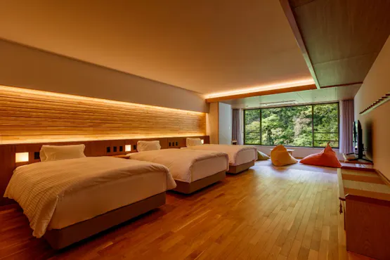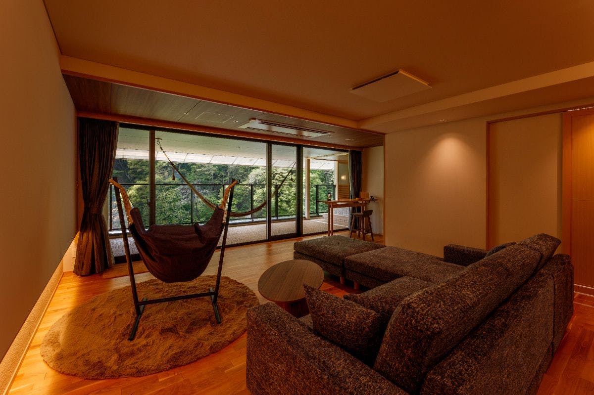 Reka bentuk yang ringkas, bilik yang selesa. Cadangan adalah bilik baru "Satoyama Seyryu 7F Premier View Suite" di mana anda boleh menggunakan sauna peribadi dan Mata air panas pada bila-bila masa.