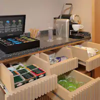 ・Memasang panel akrilik di kaunter hadapan untuk mencegah percikan titisan air liur