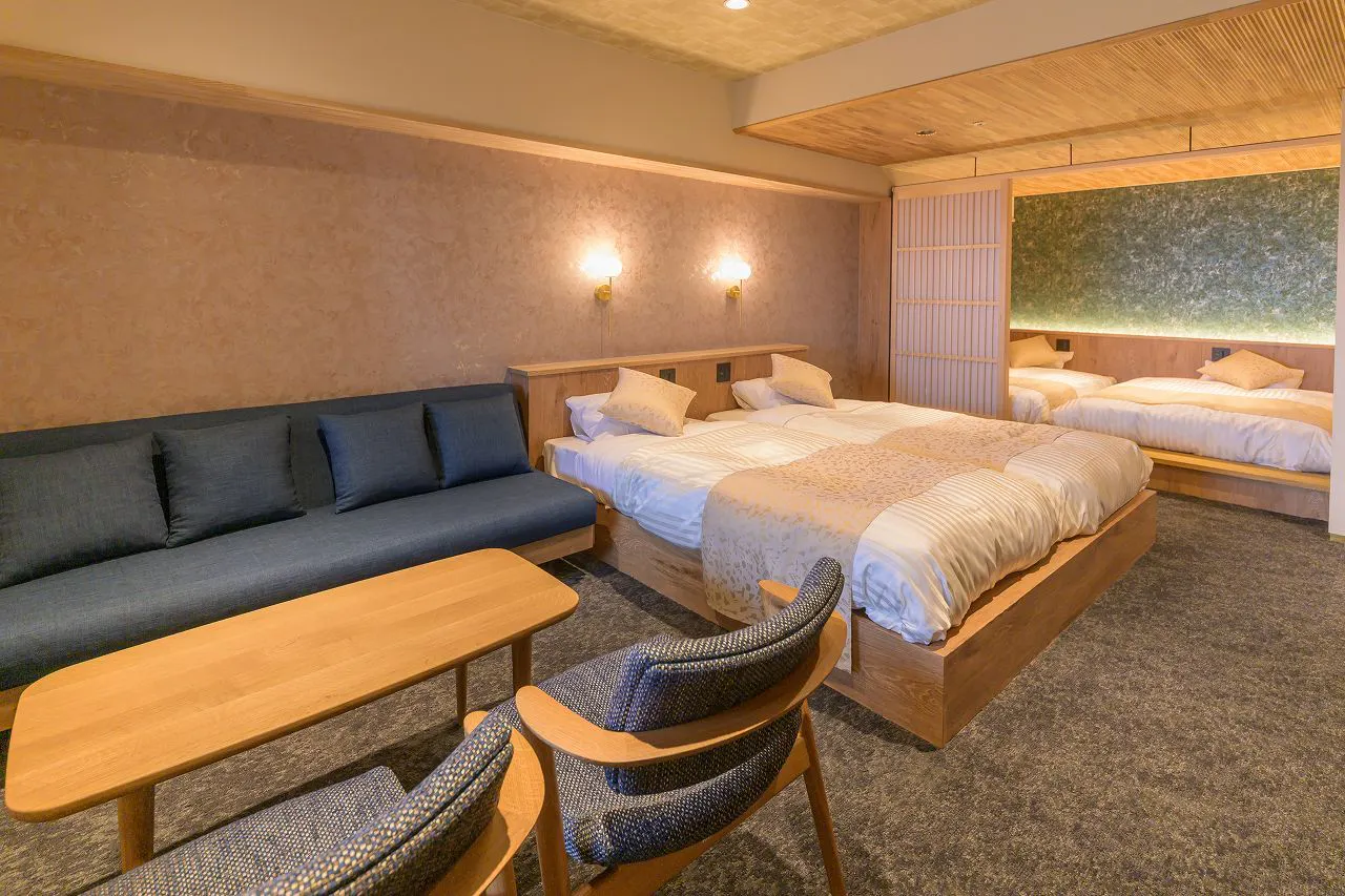Bilik ini mengekalkan suasana tradisional Jepun sambil menggunakan katil moden dan boleh memuatkan sehingga 5 orang. Direka dengan konsep universal, bilik ini sesuai untuk warga emas, keluarga dengan anak kecil, atau tetamu yang mempunyai kebimbangan mobiliti agar semua orang dapat menikmati penginapan yang selesa dan selamat.