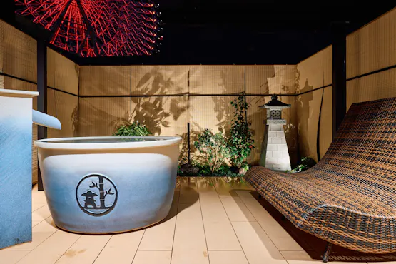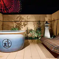Akuarium tertua di Jepun, "Ikusu", yang pernah berfungsi sebagai pembekal ke pasar semasa kemelesetan ekonomi. Kini, di lokasi yang sama terdapat akuarium terbesar di dunia, "Kaiyukan", yang menggabungkan elemen lama dan baru. Nikmati pengalaman seolah-olah berada di Ikusu melalui peta unjuran pada tab mandi anda. Rasai masa mandi yang luar biasa dan unik!