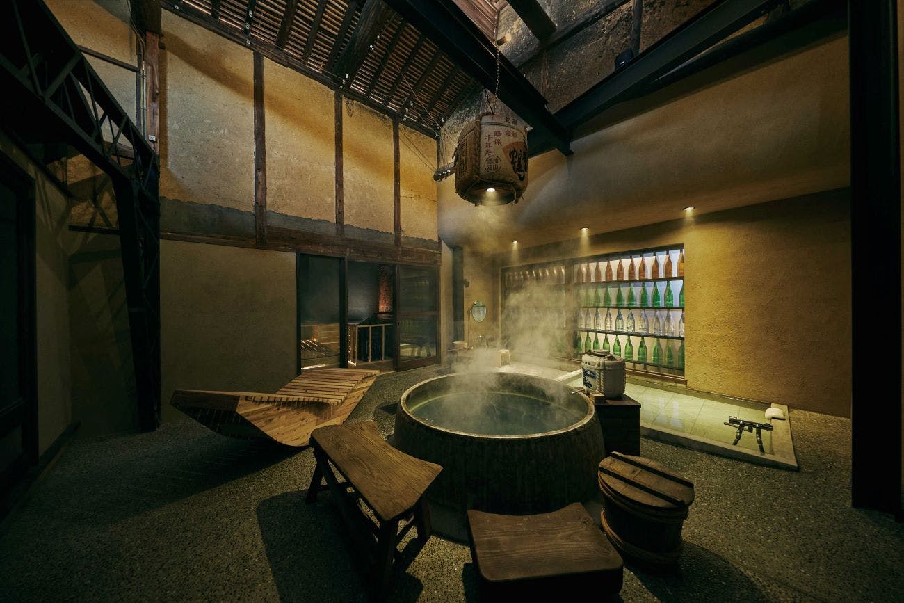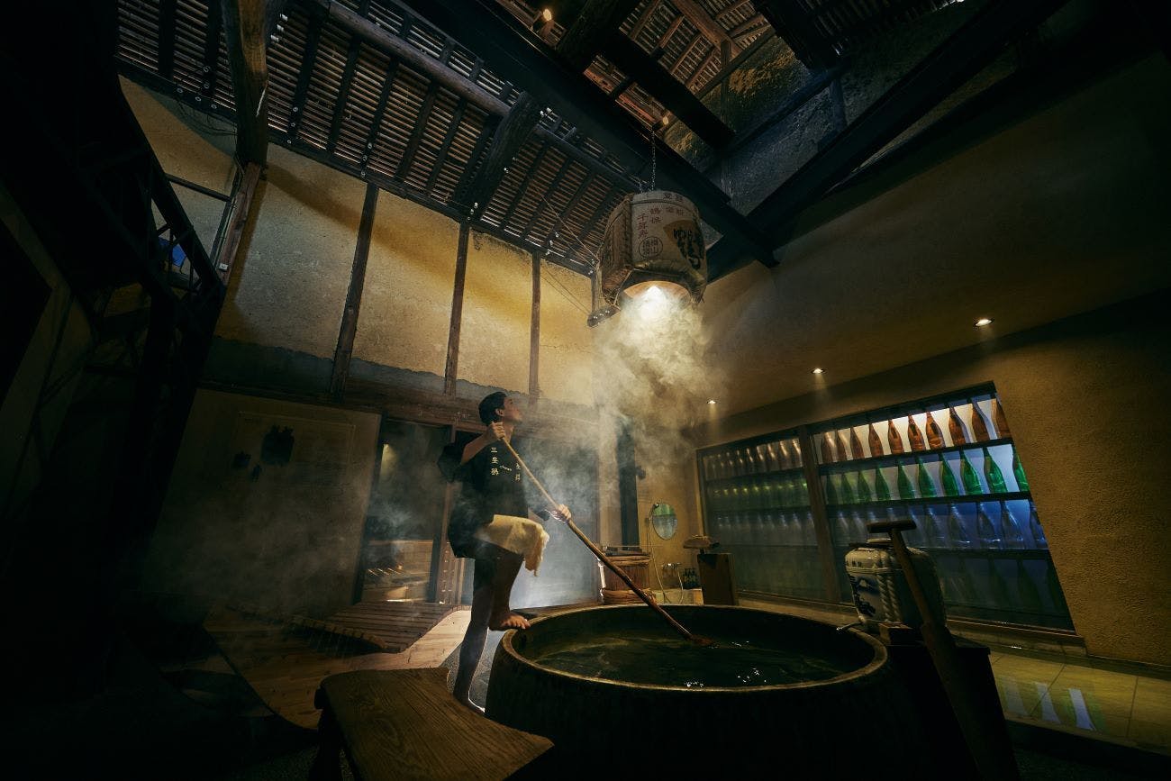 | Lain-lain | Bilik mandi awam besar pembuatan sake untuk kegunaan eksklusif Kawah besar yang pernah digunakan untuk mengukus beras sake sebenar kini dijadikan bilik mandi awam besar pembuatan sake, menggunakan air penyediaan (air pembancuhan) yang sama. |