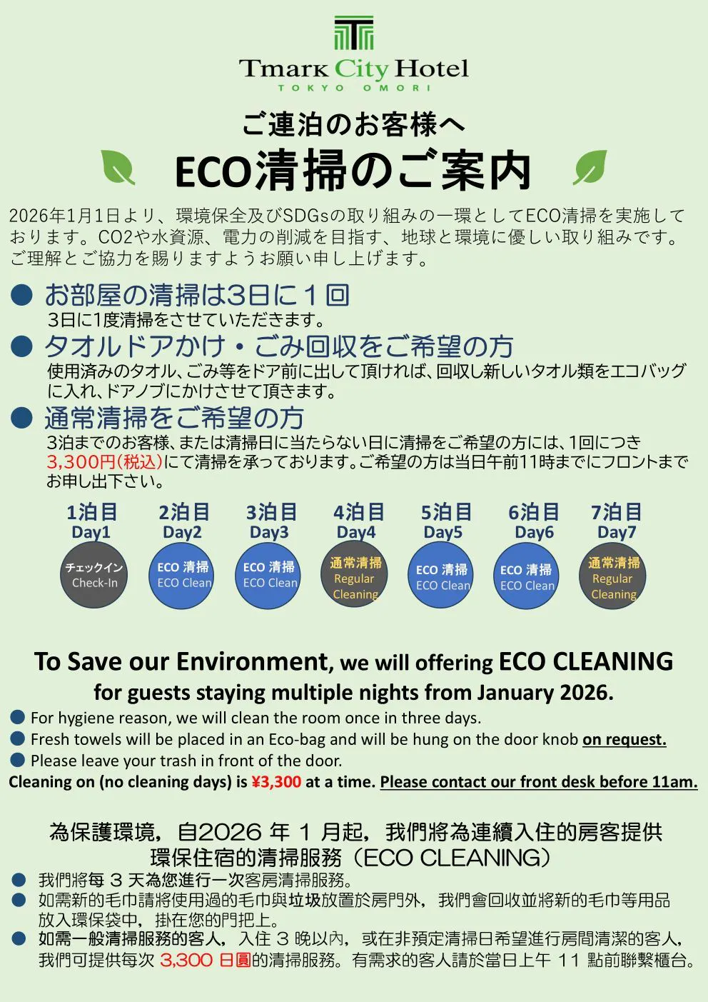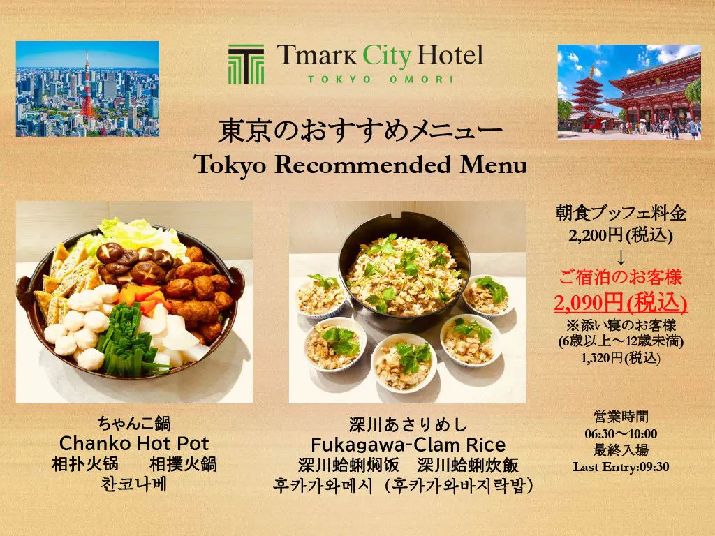 kami menyediakan “Menu Cadangan Tokyo” supaya tetamu yang menginap dapat menikmati cita rasa unik Tokyo.