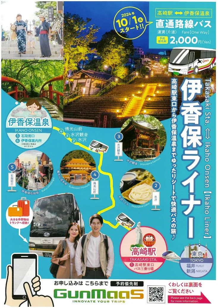 Bas terus “Ikaho Liner” kini beroperasi dari Stesen Takasaki ke Mata air panas Ikaho.