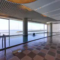 Kolam mandi besar dengan pemandangan panorama yang memberikan perasaan seolah-olah bersambung dengan Teluk Mikawa melalui kaca, dan kolam mandi luar untuk menikmati denyutan alam semula jadi.