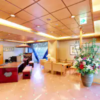 Hiasan gaya Jepun dan alunan bunyi koto memenuhi ruang dalam. Proses daftar masuk dilakukan dengan santai sambil duduk. Kereta Goshoguruma dan hiasan dalaman Jepun membawa anda ke dunia yang luar biasa.