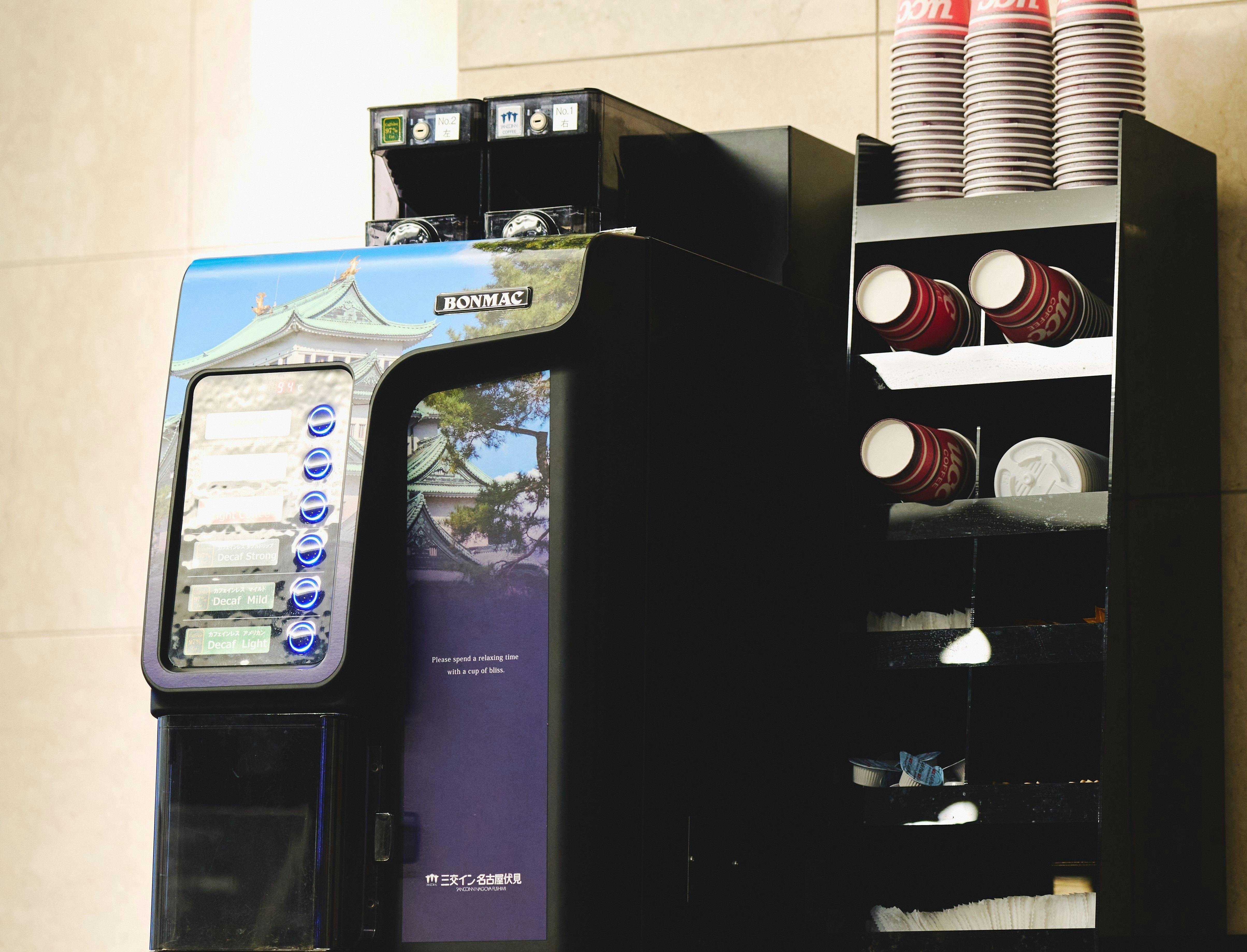 Perkhidmatan kopi selamat datang sedang dijalankan. Anda boleh memilih antara kopi campuran asli Sanco Inn dan kopi tanpa kafein mengikut citarasa anda.