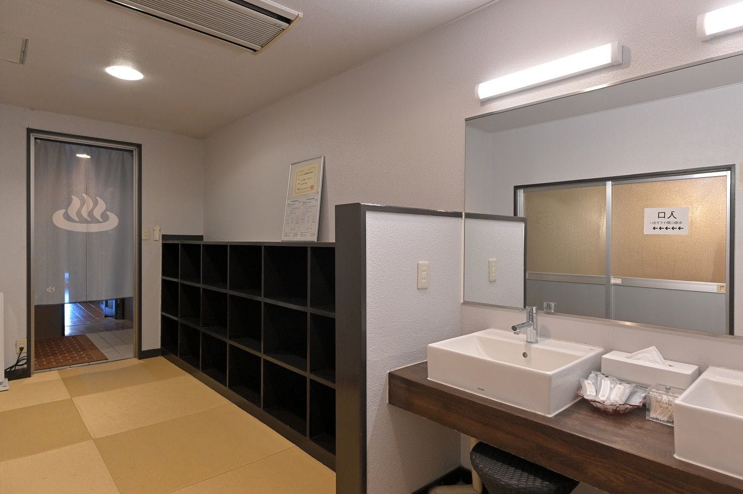 Santai dan tenangkan badan dan minda anda dengan Mata air panas alkali rendah dari anugerah Gunung Fuji, membantu melegakan keletihan harian anda. Kami menyediakan kolam mandi dalaman dan luaran yang berasingan untuk lelaki dan wanita, dan kolam mandi luaran pada waktu malam yang diterangi oleh lampu sorot adalah cadangan yang hebat. Waktu penggunaan Mata air panas: 15:00~24:00・keesokan pagi 5:00~9:30.