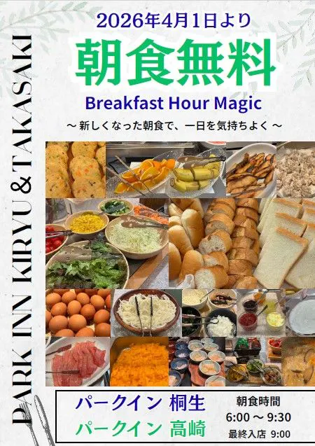 Selain itu, hotel saudara kami Park Inn Kiryu juga akan memulakan perkhidmatan sarapan percuma mulai 1 April!