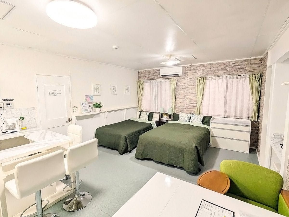 Penginapan tanpa makanan disertakan di sepanjang Park Avenue. Sesuai untuk perniagaan, pelancongan, pulang ke kampung, menonton sukan, menghadiri acara, dan pelbagai tujuan lain. Juga disyorkan untuk mereka yang ingin menikmati hiburan malam retro dan sedikit mencabar di Koza! Bilik dilengkapi dengan dapur kecil, mesin basuh dengan pengering, dan pembersih vakum robot, menyediakan kemudahan yang selesa walaupun untuk Malam berturut-turut. Kami juga mengalu-alukan penginapan untuk tempoh yang panjang. Terdapat dua jenis bilik: bilik twin gaya barat dan bilik gaya Jepun-Barat 2LDK (dengan bilik mandi dan tandas berasingan), yang boleh disewa sepenuhnya sebagai satu bangunan. Sesuai untuk perjalanan keluarga atau kumpulan! Boleh menampung sehingga 8 orang. 【Maklumat Bilik】 Terdapat dua jenis bilik: "Fresh American" bilik twin gaya barat dan "Okinawan" bilik gaya Jepun-Barat dengan susun atur 2LDK. ■ Tempat tidur ・ Fresh American: 1 katil single dan 1 katil semi-double Boleh menambah 1 katil tambahan atas permintaan awal ・ Okinawan: 2 katil single dan 4 set futon Boleh ditukar kepada 2 katil udara atas permintaan awal ■ Penyaman udara, Wi-Fi percuma ■ TV, pemain DVD, Set sofa (sofa di Okinawan juga boleh digunakan sebagai katil sofa) ■ Dapur kecil: dapur IH, peti sejuk, ketuhar gelombang mikro, Cerek elektrik, peralatan memasak, pinggan mangkuk, rempah, pembuat kopi ■ Bilik mandi pancuran ■ Tandas gaya barat ■ Mesin basuh dengan pengering, pembersih vakum robot ■ Kemudahan: tuala, tuala mandi, tuala badan, Set berus gigi, syampu & perapi, sabun badan, Pisau cukur, sikat & berus, selipar, pengering rambut, dan lain-lain ■ Tempat letak kereta percuma untuk 1 kereta setiap bilik ※ Sila merokok di kawasan merokok yang ditetapkan (bilik adalah kawasan larangan merokok) 【Akses & Maklumat Sekitar】 ■ Lebuhraya Okinawa, Okinawa Minami IC: 5 minit dengan kereta ■ Lapangan Terbang Naha: kira-kira 43 minit dengan kereta ■ Okinawa Arena: 5 minit dengan kereta ■ Okinawa Zoo & Museum Kanak-kanak: 7 minit dengan kereta ■ Taman Sukan Komprehensif Okinawa: 14 minit dengan kereta Terletak di tengah-tengah pulau utama Okinawa, akses sangat baik. Sangat mudah sama ada dengan kereta atau bas.