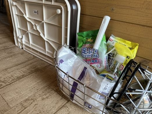 Penggulung pelekat, tisu basah, penyahbau, helaian haiwan peliharaan, dulang tandas, mangkuk makanan haiwan peliharaan (untuk makanan & air).