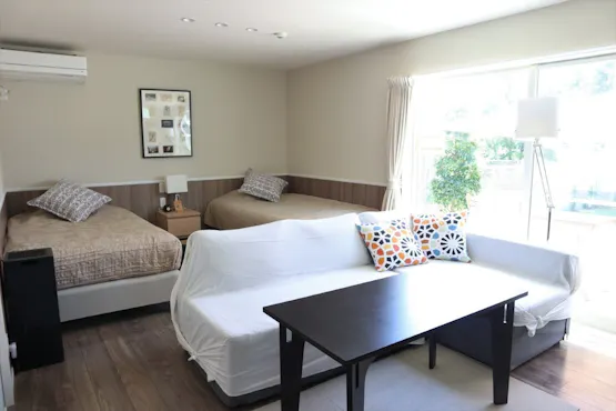 | Haiwan peliharaan | Boleh ※Percuma untuk sehingga 2 ekor anjing peliharaan, anjing ketiga dan seterusnya akan dikenakan bayaran sebanyak 2200 yen setiap ekor. (Glamping hanya membenarkan sehingga 2 ekor anjing kerana ruang yang terhad)