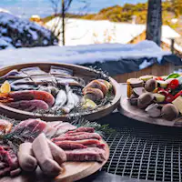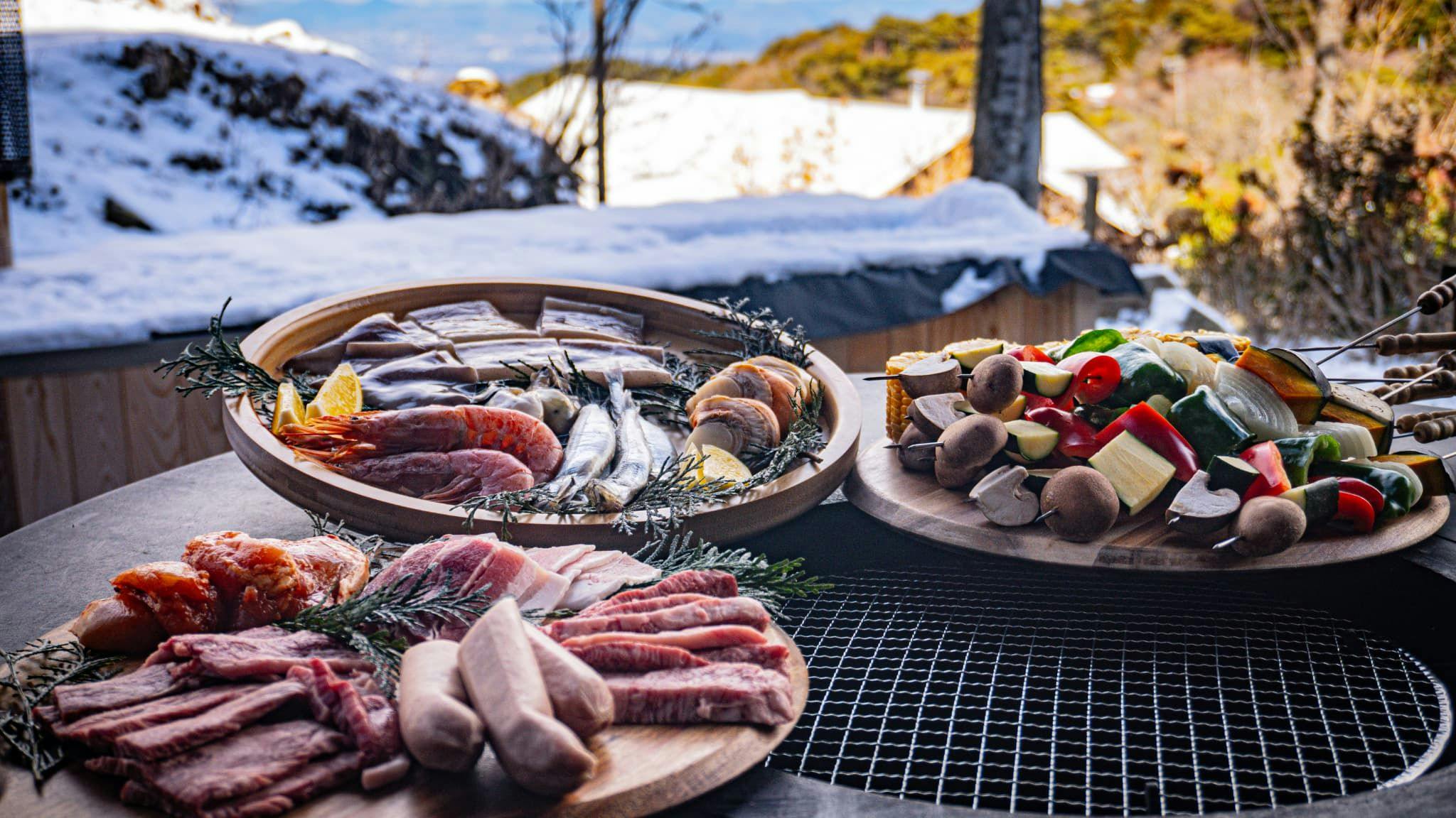 Makan malam boleh dipilih antara "BBQ" atau "Sukiyaki". Semua bahan dan peralatan akan dihantar terus ke bilik anda, memberikan pengalaman makan malam peribadi tanpa gangguan.