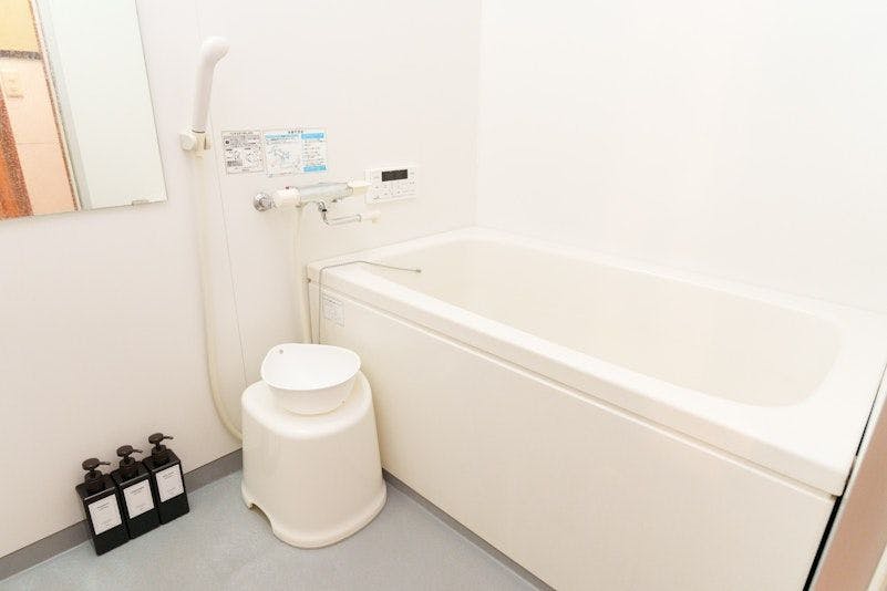 Dapur dilengkapi sepenuhnya dengan peralatan memasak dan disyorkan untuk penginapan jangka panjang. Disediakan peti sejuk, periuk nasi, ketuhar gelombang mikro, cerek elektrik, pembakar roti, periuk, kuali, papan pemotong, pisau dapur, penyepit masakan (saibashi), senduk sup (ladle), pinggan mangkuk, gelas, kutleri, sabun pencuci pinggan, span dan beg sampah. ※Perasa/condiment tidak disediakan.