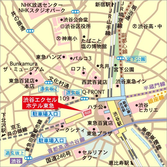■เชื่อมต่อโดยตรงกับสถานีชิบูย่า (JR Yamanote Line, Saikyo Line / Tokyo Metro Ginza Line, Hanzomon Line, Fukutoshin Line / Tokyu Toyoko Line, Den-en-toshi Line) ■ตั้งอยู่ด้านบนของสถานีชิบูย่า (Keio Inokashira Line) ■ขับรถจากทางออก Shibuya ของทางด่วนเมืองหลวงเพียง 3 นาที ■เดินทางด้วยรถบัสลิมูซีนจากสนามบินนาริตะประมาณ 85 นาที (เวลามาตรฐาน) ■เดินทางด้วยรถบัสลิมูซีนจากสนามบินฮาเนดะประมาณ 40-60 นาที (เวลามาตรฐาน)