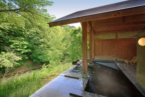 ที่พักที่งดงามพร้อมอ่างอาบน้ำกลางแจ้งในทุกห้อง ตั้งอยู่ในทำเลที่เงียบสงบในหุบเขาพร้อมวิวภูเขาทานิกาวะ
