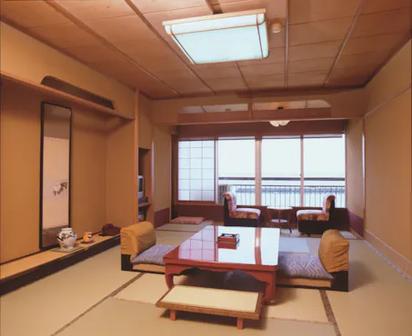 ห้องพักสไตล์ญี่ปุ่นที่กว้างขวางมอบความพึงพอใจและช่วยบรรเทาความเหนื่อยล้าของคุณ ห้องพักมีอ่างอาบน้ำส่วนตัวที่สามารถใช้งานได้ตลอดเวลา อ่างอาบน้ำกลางแจ้งในห้องพักใช้ น้ำพุร้อนธรรมชาติของเรา