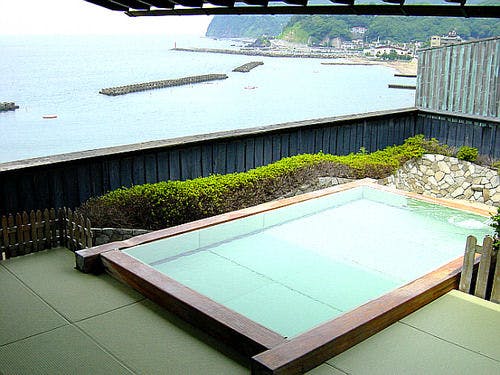 ห้องอาบน้ำสาธารณะบนชั้นบนสุดมีการปูเสื่อทาทามิทั้งในห้องเปลี่ยนเสื้อผ้า ห้องอาบน้ำ และอ่างอาบน้ำ ใช้วัสดุพิเศษที่เรียกว่า "มิสึทาทามิ" ท่านสามารถชมวิวอ่าวสุรุกะที่กว้างใหญ่ได้จากที่นี่ อย่าลืมชมพระอาทิตย์ตกจากที่นี่