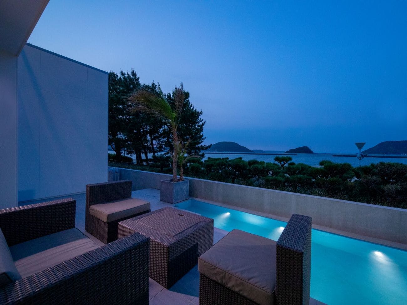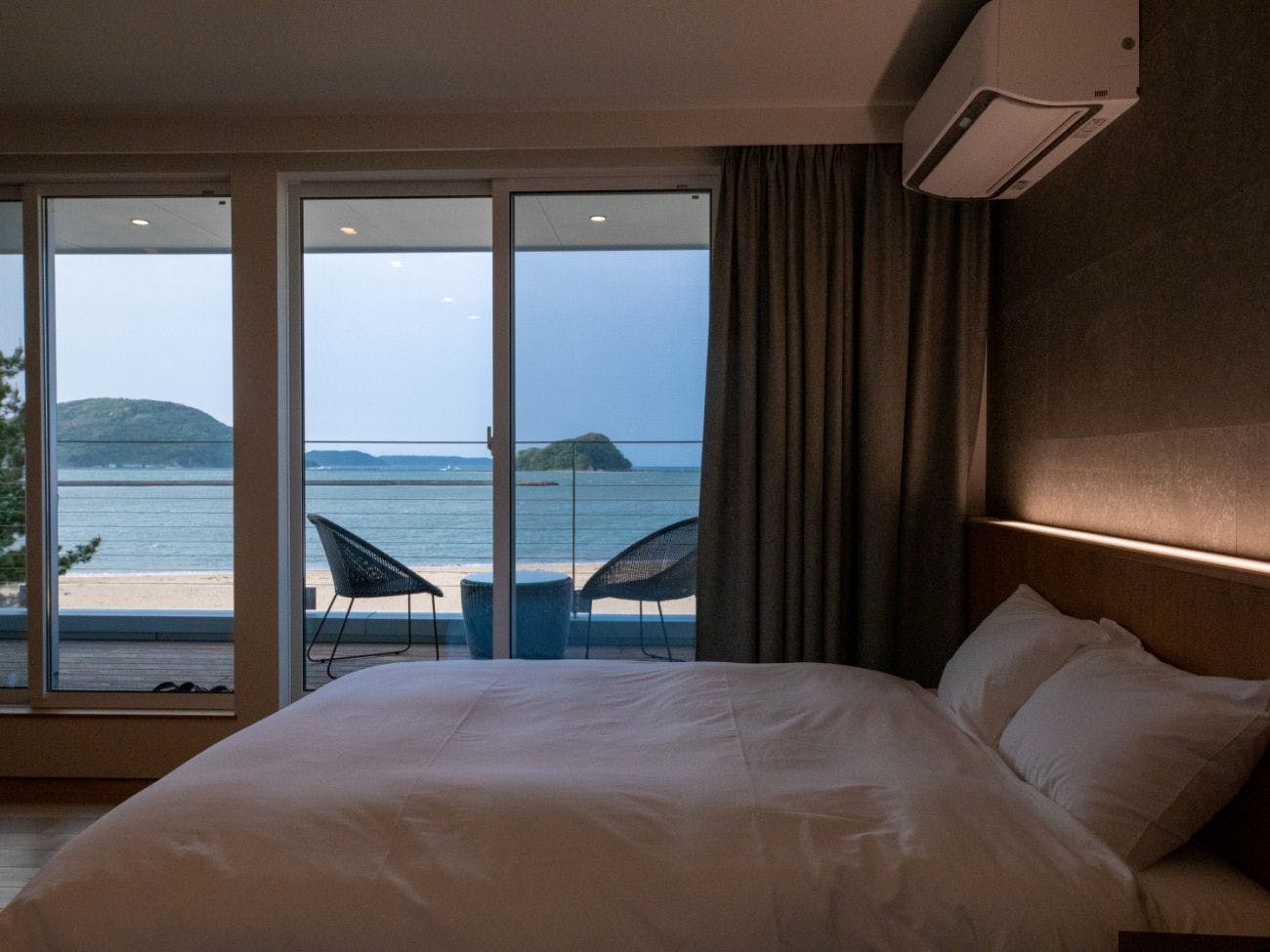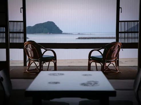 ที่พักสไตล์ญี่ปุ่นแท้ ตั้งอยู่ใกล้กับปราสาทคารัตสึ มองเห็นทะเลเก็นไคจากทุกห้อง