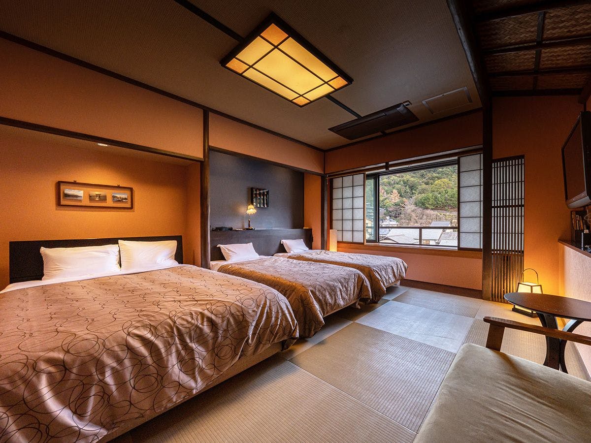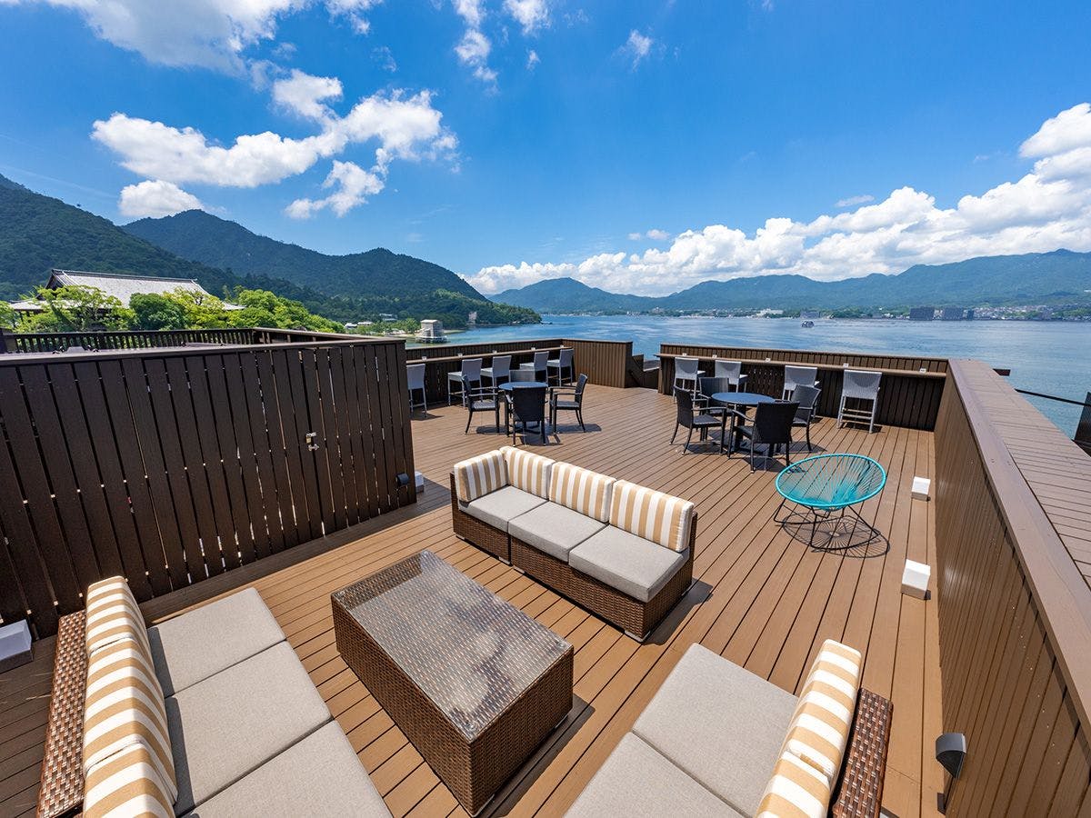 เรียวกังเก่าแก่ที่สามารถเพลิดเพลินกับน้ำพุร้อนน้ำขึ้นน้ำลงและอาหารท้องถิ่น พร้อมชมวิวที่งดงามของมิยาจิมะ