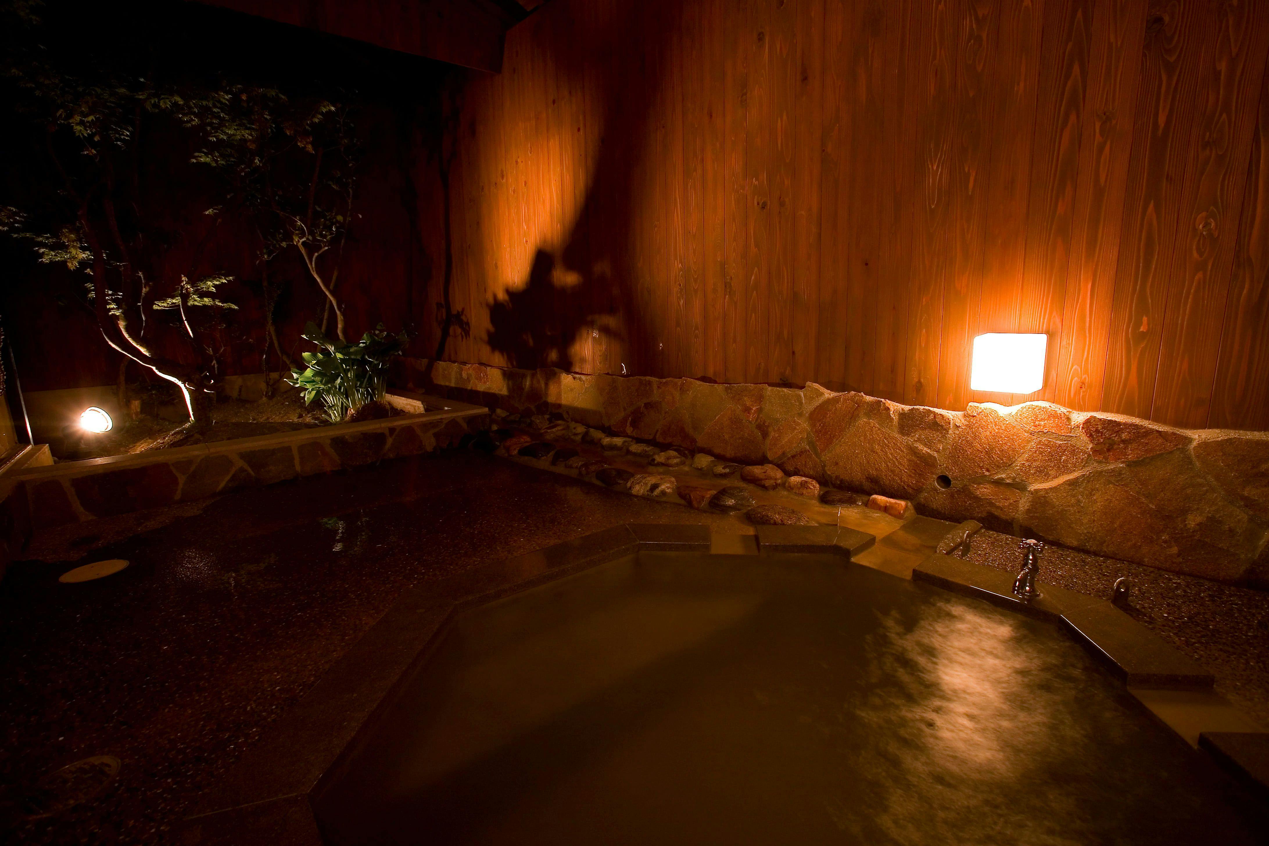 ห้องแกรนด์รูมซึกิยามะมีอ่างอาบน้ำกึ่งกลางแจ้งที่ใช้น้ำพุร้อนจากแหล่งน้ำโดยตรง ท่านสามารถเพลิดเพลินกับน้ำพุร้อนในพื้นที่ส่วนตัวของท่านเอง