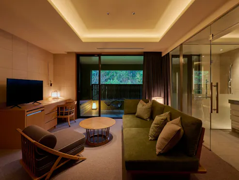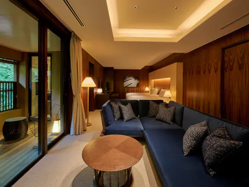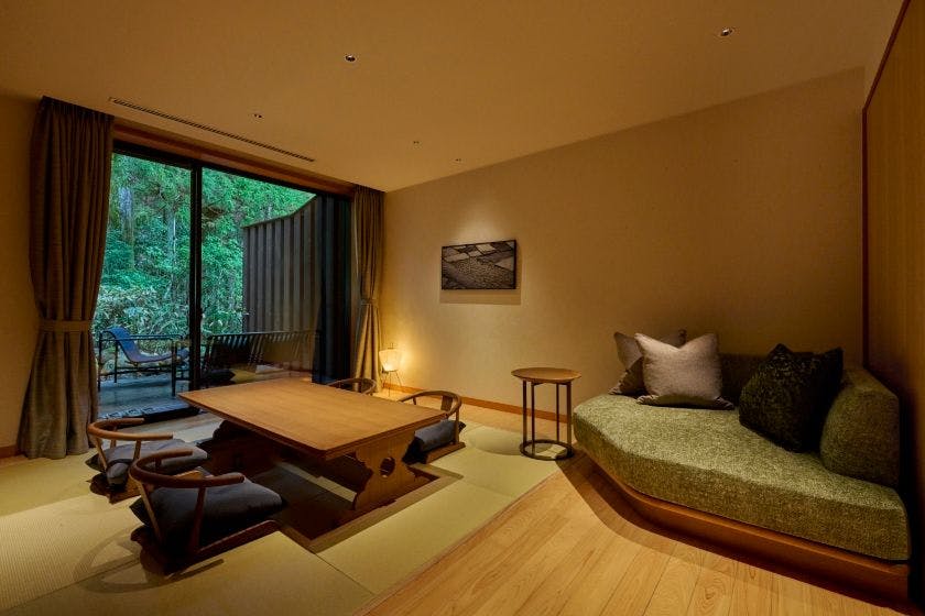 พื้นที่อันเงียบสงบที่ให้คุณสัมผัสความเป็นญี่ปุ่นซึ่งเชื่อมโยงกับแสงธรรมชาติ ผสานด้วยโขดหินทรงพลังและพืชพรรณอันเป็นเอกลักษณ์ของฮาโกเนะ ช่วยเพิ่มมิติความลุ่มลึก ให้ความรู้สึกราวกับอยู่ท่ามกลางธรรมชาติในรีสอร์ตหรูระดับลักชัวรีแห่งนี้