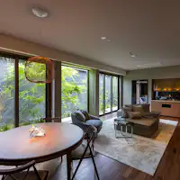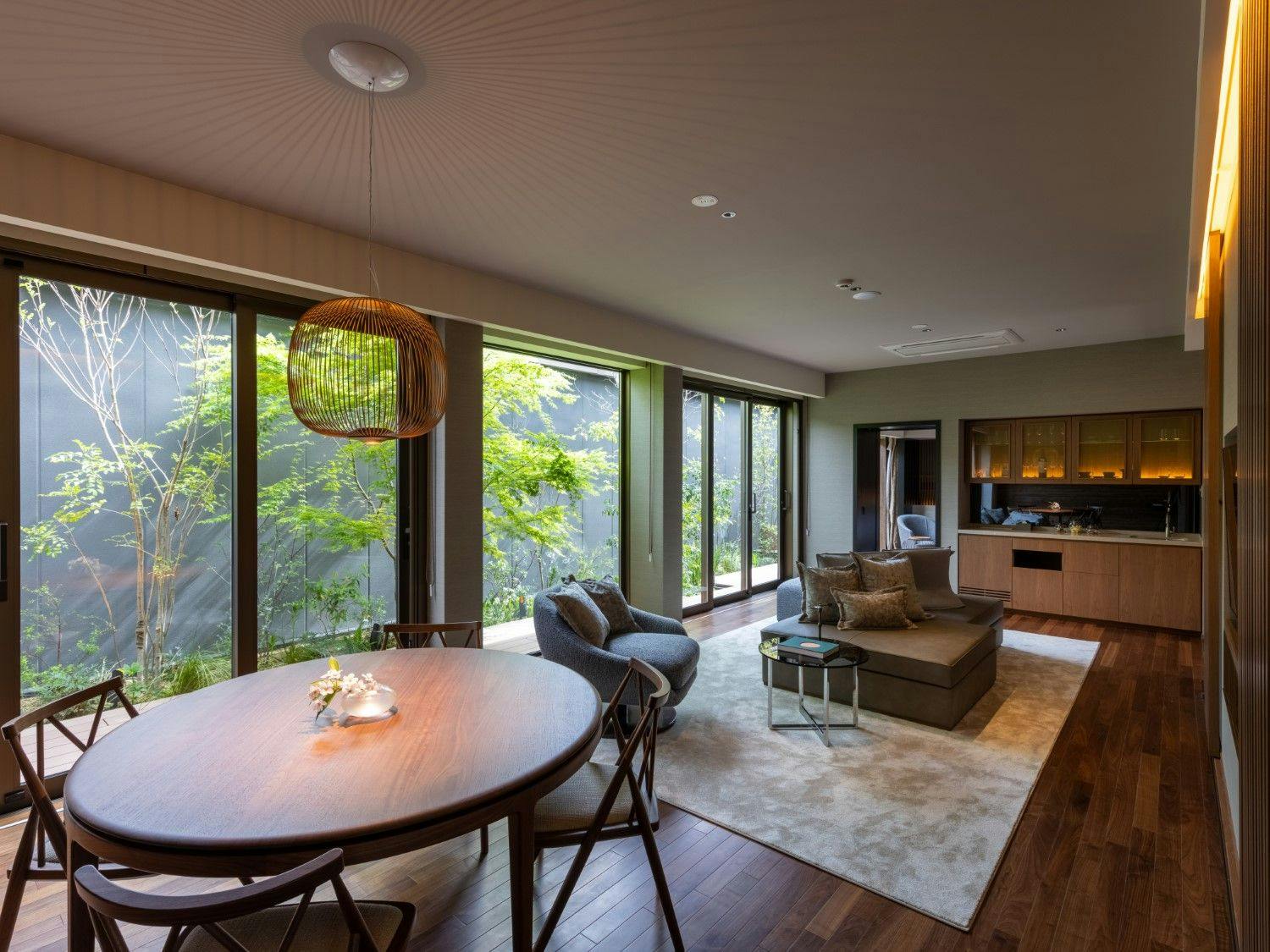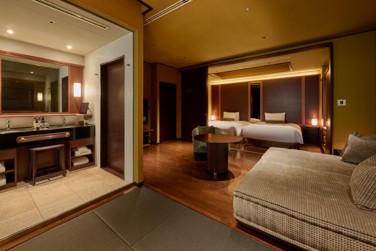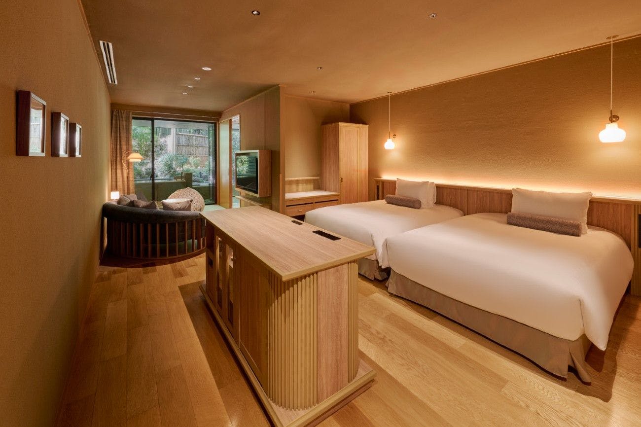 รีสอร์ทหรูที่ให้ความรู้สึกเหมือนอยู่ท่ามกลางธรรมชาติ ด้วยบรรยากาศสงบที่เชื่อมโยงกับแสงธรรมชาติ พร้อมด้วยหินและพืชพรรณอันเป็นเอกลักษณ์ของฮาโกเนะที่เพิ่มความลึกซึ้งให้กับพื้นที่