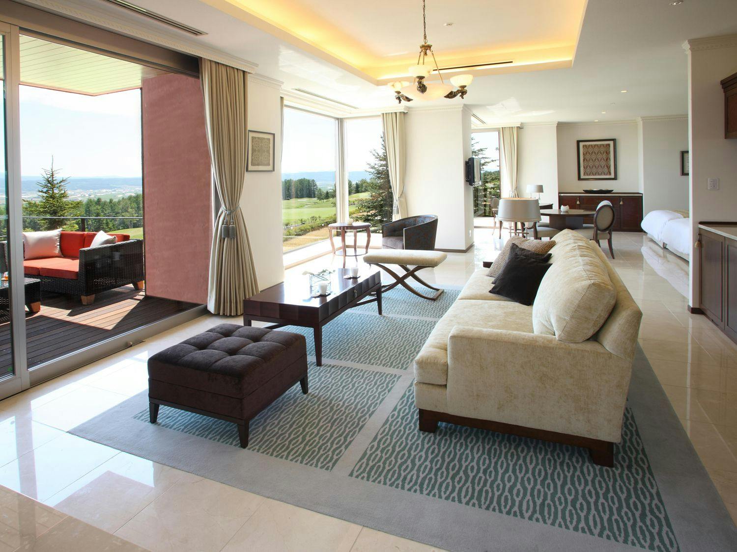 คุณสามารถสัมผัสกับทัศนียภาพที่น่าทึ่งได้อย่างเต็มที่ผ่านหน้าต่างบานใหญ่ที่ครอบคลุมทั้งผนัง