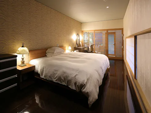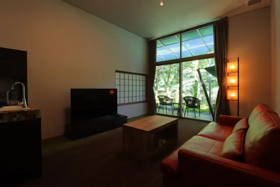 ห้องพักทุกห้องเป็นเรือนแยกส่วนตัว พร้อมออนเซ็นกลางแจ้งที่ได้ยินเสียงลำธารดังแผ่วเบา เมื่อเอนกายลงในอ่าง แค่ได้ฟังเสียงสายน้ำใสที่ไหลอยู่ใกล้ ๆ ก็ช่วยคลายใจและชะล้างความเหนื่อยล้าจากชีวิตประจำวัน พื้นที่ที่โอบล้อมด้วยโขดหินปกคลุมมอสและความเขียวขจี มอบความสงบลึกซึ้งราวกับถูกธรรมชาติกอดไว้ ท่วงทำนองอันเงียบสงบจากเสียงลำธารช่วยให้ทั้งกายใจได้ล้าง และพาไปสู่การพักผ่อนอย่างรื่นรมย์