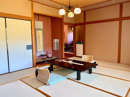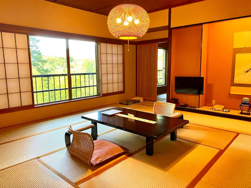 ห้องสวีทที่เราภูมิใจนำเสนอมีพื้นที่กว้างขวางถึง 120 ตารางเมตร ห้องพักแบบญี่ปุ่นแท้พร้อมการออกแบบแบบโชอิน ห้องนั่งเล่นพร้อมระบบเสียงรอบทิศทาง และอ่างอาบน้ำกลางแจ้งฮิโนกิที่ใช้น้ำพุร้อนธรรมชาติจากพื้นที่ นอกจากนี้เรายังเตรียมห้อง "Tsukimidai" ที่มีสไตล์เพื่อให้คุณได้ผ่อนคลายหลังอาบน้ำในชุดคลุมอาบน้ำ