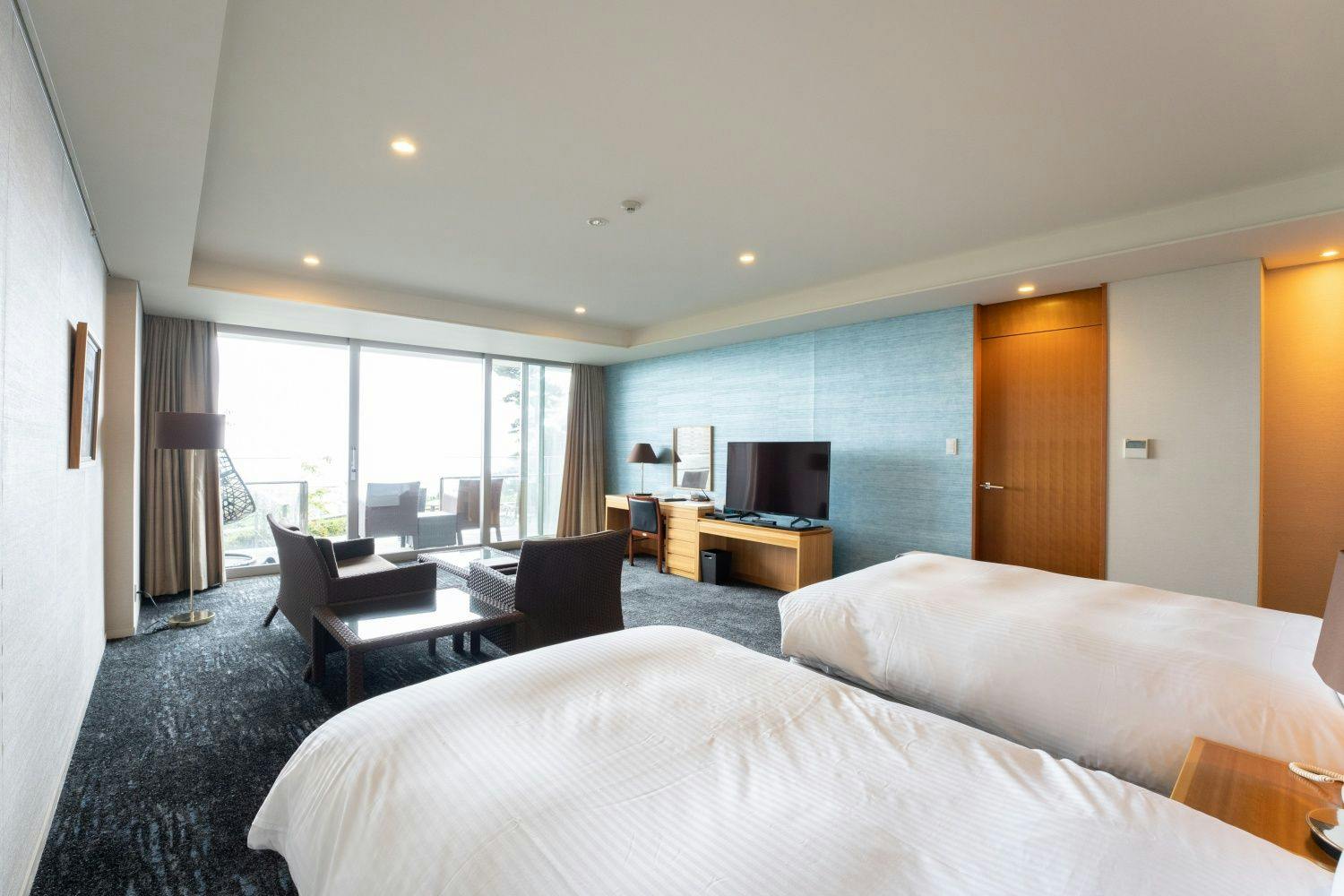 ห้องพักที่ตกแต่งด้วยการออกแบบภายในที่เรียบง่าย มีพื้นที่กว้างขวางกว่า 86.4 ตารางเมตร นอกหน้าต่างบานใหญ่มีอ่าวซางามิและธรรมชาติที่เขียวขจีมอบความรู้สึกโปร่งโล่ง เพลิดเพลินกับช่วงเวลาแห่งการพักผ่อนในบรรยากาศที่สบายใจ