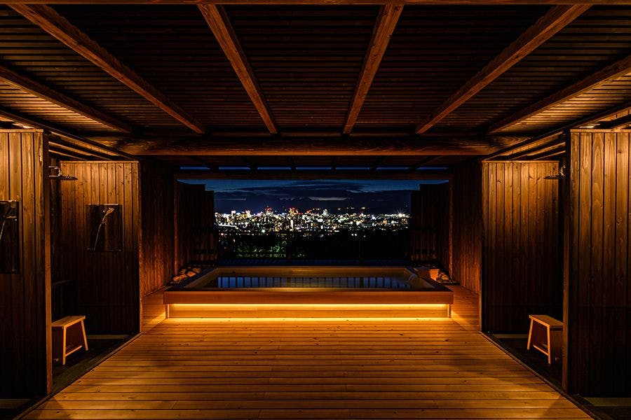 เราได้เพิ่มห้องซาวน่าใหม่ในออนเซ็นกลางแจ้งที่มีวิวสวยงาม ซาวน่าแบบเซลฟ์โลว์ริวพร้อมหน้าต่างบานใหญ่ที่สามารถมองเห็นวิวเมืองโอกายามะยามค่ำคืน