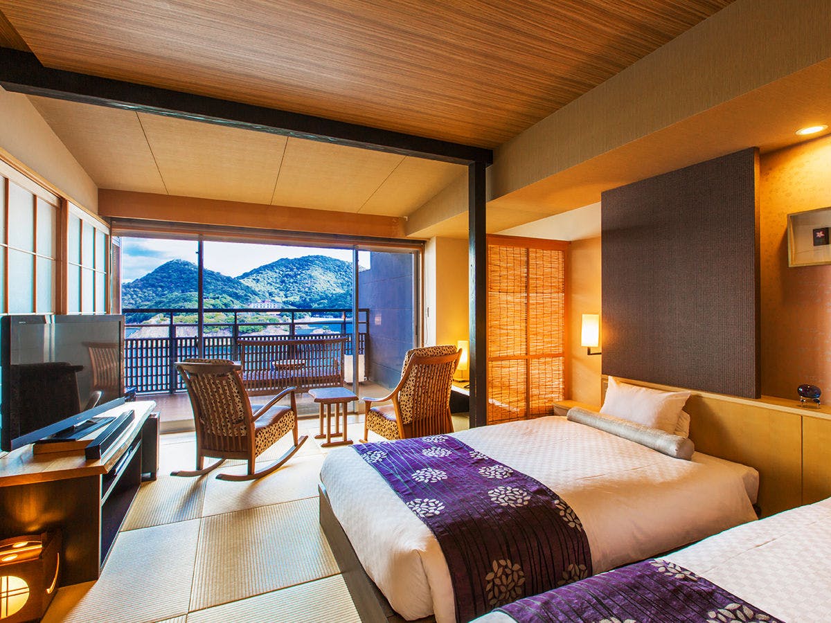 เรียวกังน้ำพุร้อนที่ตั้งอยู่ท่ามกลางประวัติศาสตร์ของโทโมโนะอุระและทะเลที่เงียบสงบของทะเลเซโตะในไค