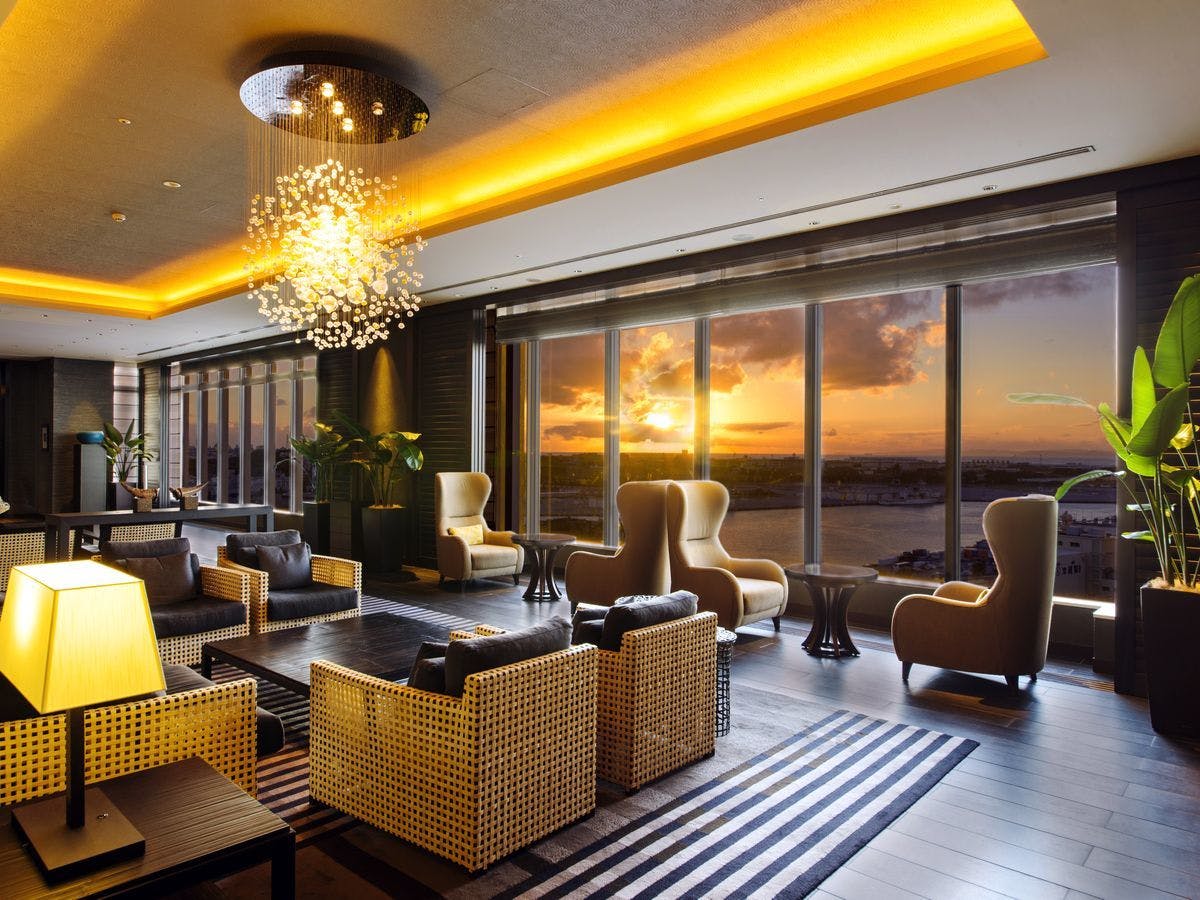 จากชั้นล็อบบี้บนสุด ท่านสามารถชมวิวทะเลจีนตะวันออกและทิวทัศน์ของเมืองนาฮาได้อย่างเต็มตา พร้อมเพลิดเพลินกับพระอาทิตย์ตกดินที่งดงามในยามเย็น