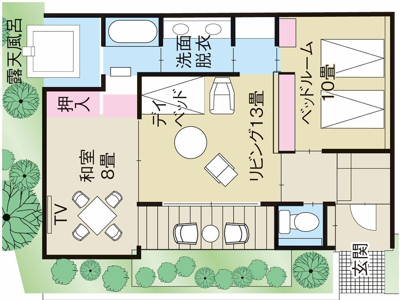| เด็ก ๆ | คุณสามารถเข้าพักได้ อาหารเย็นสำหรับเด็กจะเป็นชุดอาหารญี่ปุ่น (ไม่ใช่จานอาหารตะวันตกสำหรับเด็ก) อาหารเช้าจะเป็นอาหารชุดญี่ปุ่น