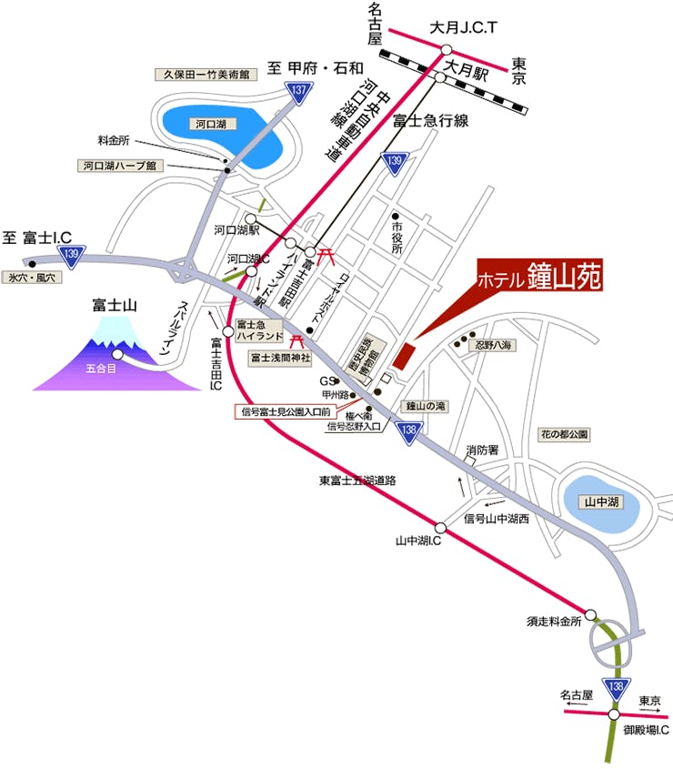 บริการต้อนรับจากสถานี: รถบัสบริการรับส่งเชื่อมระหว่างสถานีชินคันเซ็นมิชิมะ・สถานีโกเท็มบะ และ เบ็สโซะ เซ็นเซ็น (โรงแรมคาเนยามะเอ็น) ให้บริการทุกวัน (ต้องทำการจองล่วงหน้า・มีค่าใช้จ่าย)