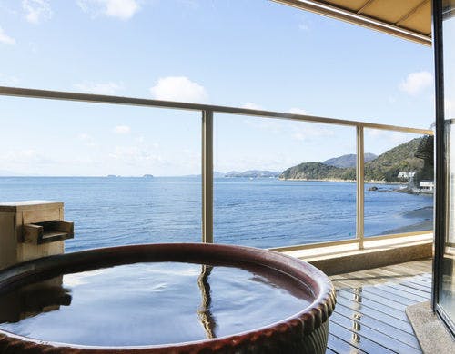 ห้องอาบน้ำแยกชายหญิงตั้งอยู่ที่ชั้น 3 โดยมีวิวจากห้องอาบน้ำที่งดงามอย่างแท้จริง มองเห็นหมู่เกาะอิเอะ โบเซะ นิชิจิมะ และโอกะในระยะไกล และเกาะเล็กๆ โทนิที่ลอยอยู่ในทะเล หากอากาศดี คุณยังสามารถมองเห็นเกาะโชโดะได้อย่างเลือนลาง ลมทะเลที่สดชื่นและกลิ่นหอมของทะเลจะโอบล้อมร่างกายของคุณ ช่วยให้คุณลืมความวุ่นวายในชีวิตประจำวันและผ่อนคลายจิตใจ