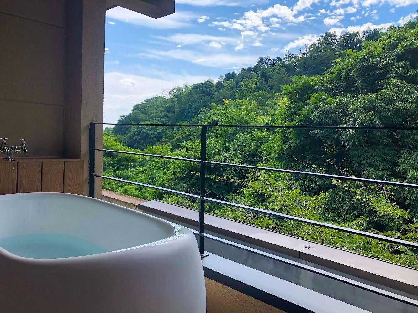 ฟังเสียงลำธารใสไหลเย็น พร้อมแช่น้ำพุร้อนกลางแจ้งที่กว้างขวางเกินพอสำหรับสองคน เพลิดเพลินกับจากุซซี่ หลังจากนั้นดื่มฉลองที่มินิบาร์บนระเบียงสไตล์เอเชีย ชมวิวแม่น้ำและภูเขาที่สร้างบรรยากาศสุดพิเศษ