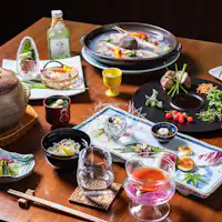 อาหารเย็นเป็นชุดไคเซกิที่ใช้วัตถุดิบสดใหม่จากอ่าวซางามิและวัตถุดิบท้องถิ่น เมนูจะเปลี่ยนไปตามเดือน โดยเชฟใหญ่ได้ใส่ใจทำทุกจานด้วยมือ สำหรับอาหารเช้า ท่านสามารถเลือกเมนูไข่และปลาตากแห้งตามความชอบของท่าน