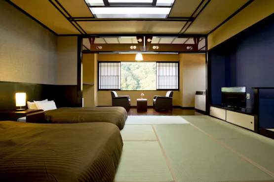ห้องพักทุกห้องวิวแม่น้ำ มองเห็นทิวทัศน์อันงดงามของแม่น้ำโมกามิและน้ำตกชิราอิโตะผ่านหน้าต่างบานใหญ่ ให้คุณได้สัมผัสบรรยากาศแสนพิเศษไม่เหมือนใคร ขอเชิญใช้เวลาพักผ่อนอย่างสบาย ๆ ดื่มด่ำกับช่วงเวลาอันผ่อนคลายราวกับโอบล้อมด้วยสายน้ำของแม่น้ำโมกามิ