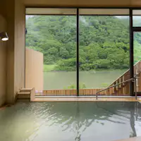 ห้องอาบน้ำที่สร้างด้วยไม้ฮิโนกิหอมละมุน พื้นที่ไม้ที่เงียบสงบและแสงไฟช่วยรังสรรค์ช่วงเวลาอันหรูหรา น้ำมีคุณสมบัติอ่อนโยนต่อผิว เหมาะสำหรับการแช่นาน จึงสามารถเพลิดเพลินกับน้ำพุร้อนได้อย่างเต็มที่เท่าที่เวลาจะเอื้ออำนวย